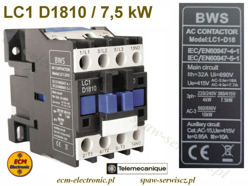 Stycznik BWS typ LC1-D1810/230VAC-50/60Hz (zamiennik CI-15)