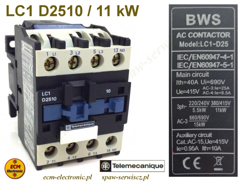 Styczniki BWS typu LC1-D2510 stosowane są jako zamienniki styczników Danfoss typu