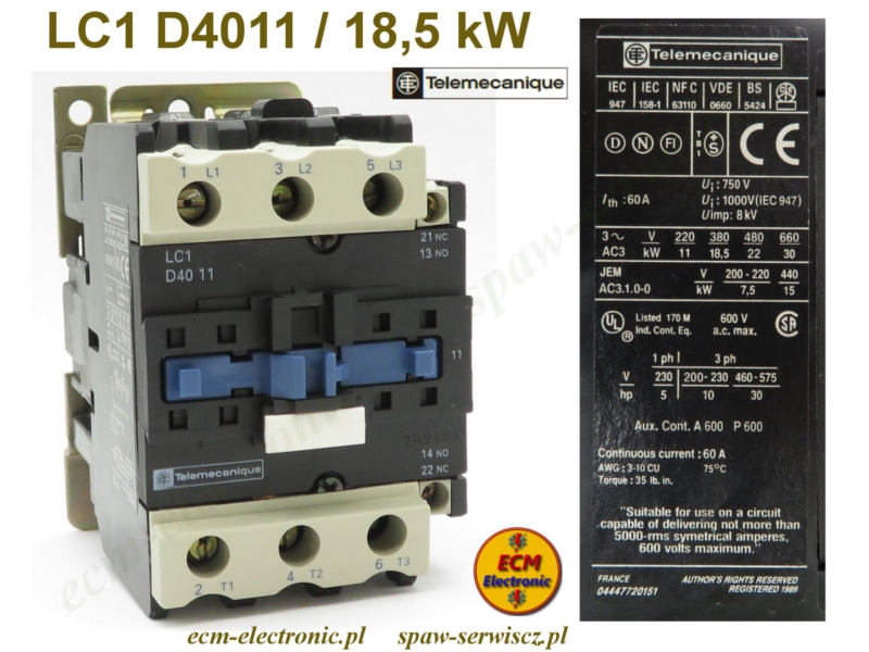 zasilania. Styczniki typu LC1-D4011 z cewką sterującą na