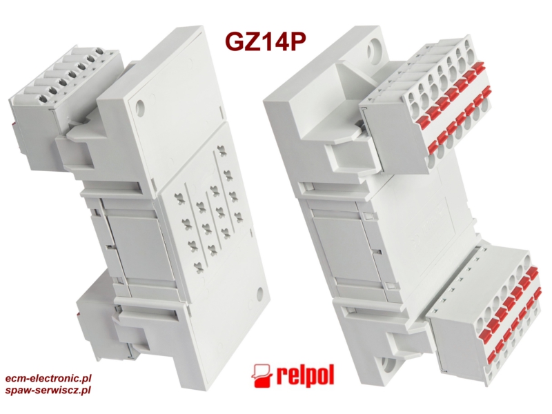 Gniazdo z zaciskami Push-in, montaż na płycie zatablicowy, stosowane przy montażu przekaźników R15 4P.