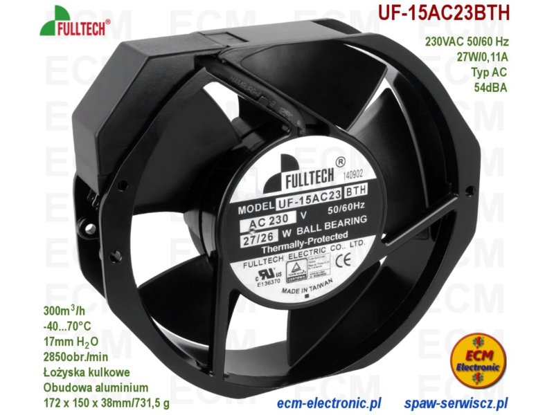Wentylator UF-15AC23BTH/230VAC, wym. 172x150x38 mm. FULLTECH