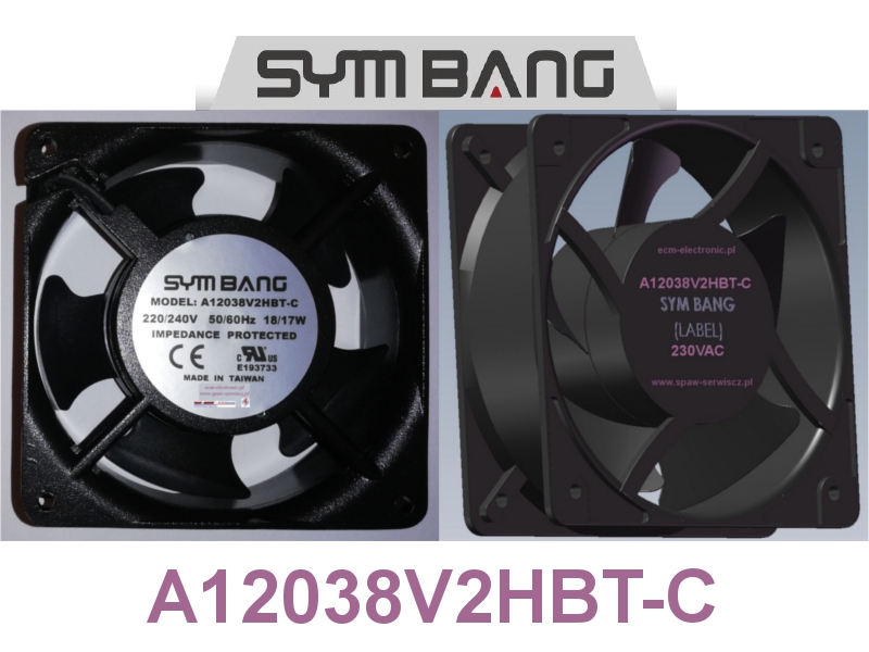 Wentylator A12038V2HBT-C/230VAC, wym. 119 x 119 x 38 mm.