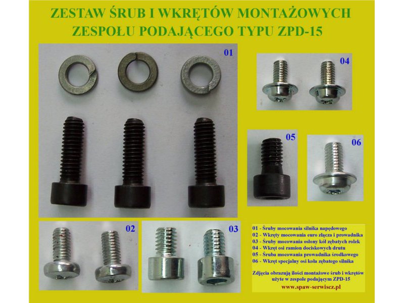Zastosowanie: Zestaw wkrętów i śrub montażowych części i