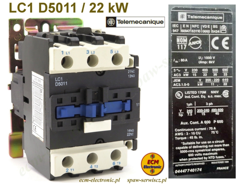 UWAGA:   Styczniki BWS typu LC1-D5011 stosowane są jako zamienniki styczników Danfoss typu CI-45.