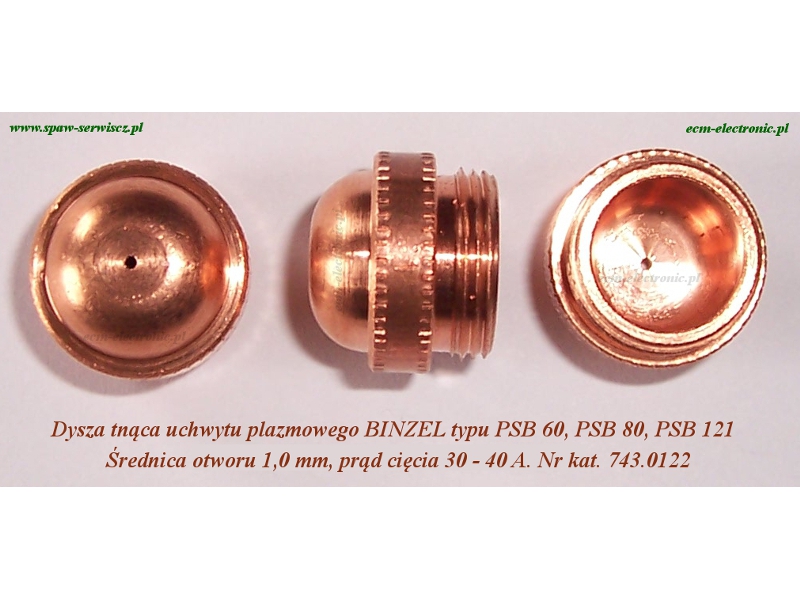 Zastosowanie: Dysza tnąca kulista (ze stopem cyrkonu) palnika uchwytu plazmowego BINZEL typu PSB-60/80/121