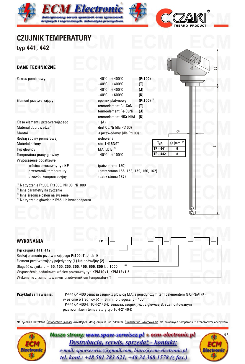 o temperaturze dochodzącej do 600°C(temp. nominalna do 600°C). Czujnik może pracować w konfiguracji z przetwornikiem prądowym