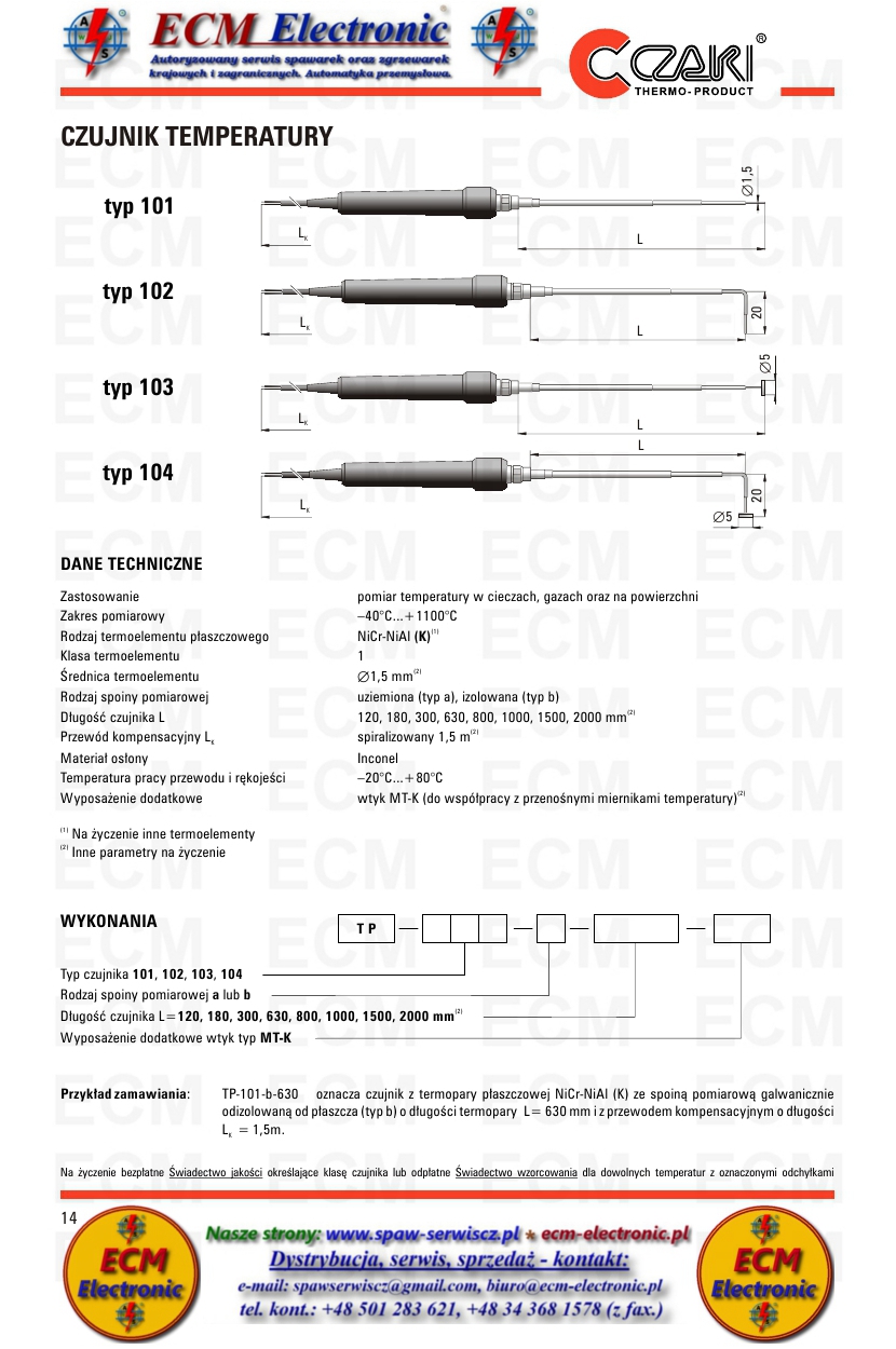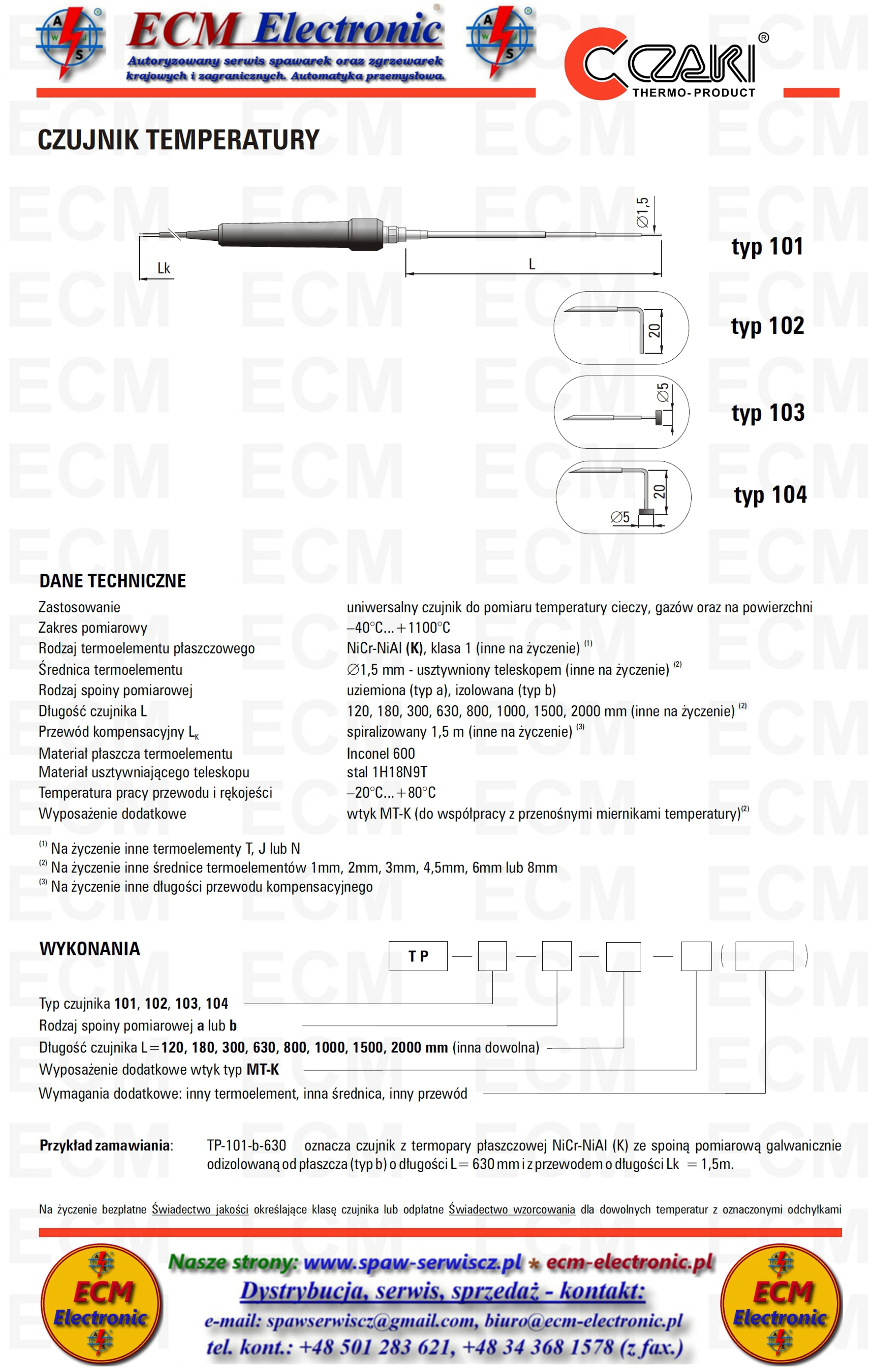 * Temp. pracy czujnika - od -40°C do +1100°C, od -100°C do max. +1200°C