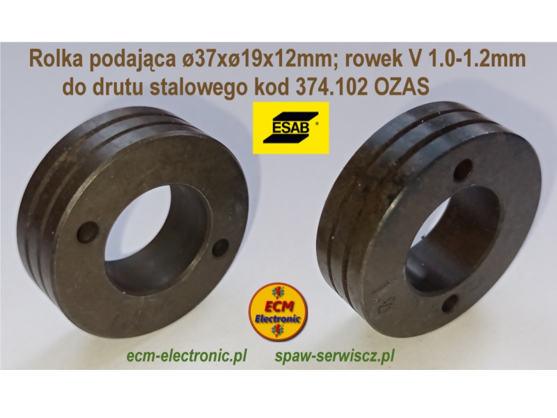 Rolka Ø37xØ19x12mm; rowek V 1.0-1.2mm OZAS-ESAB
