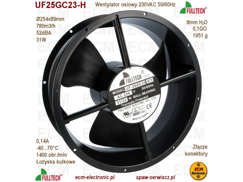 Wentylator UF25GC23-H/230VAC, wym. Ø254x89mm. FULTECH