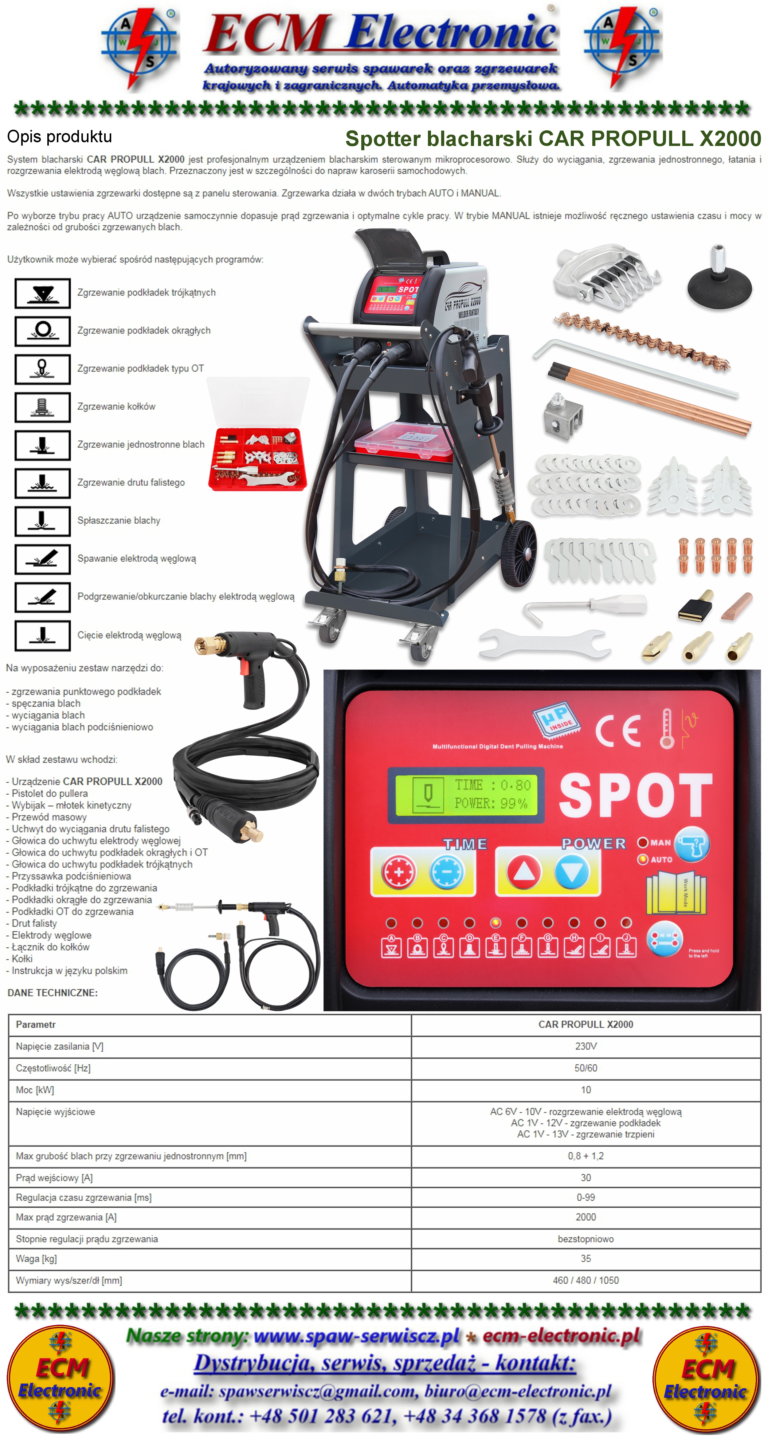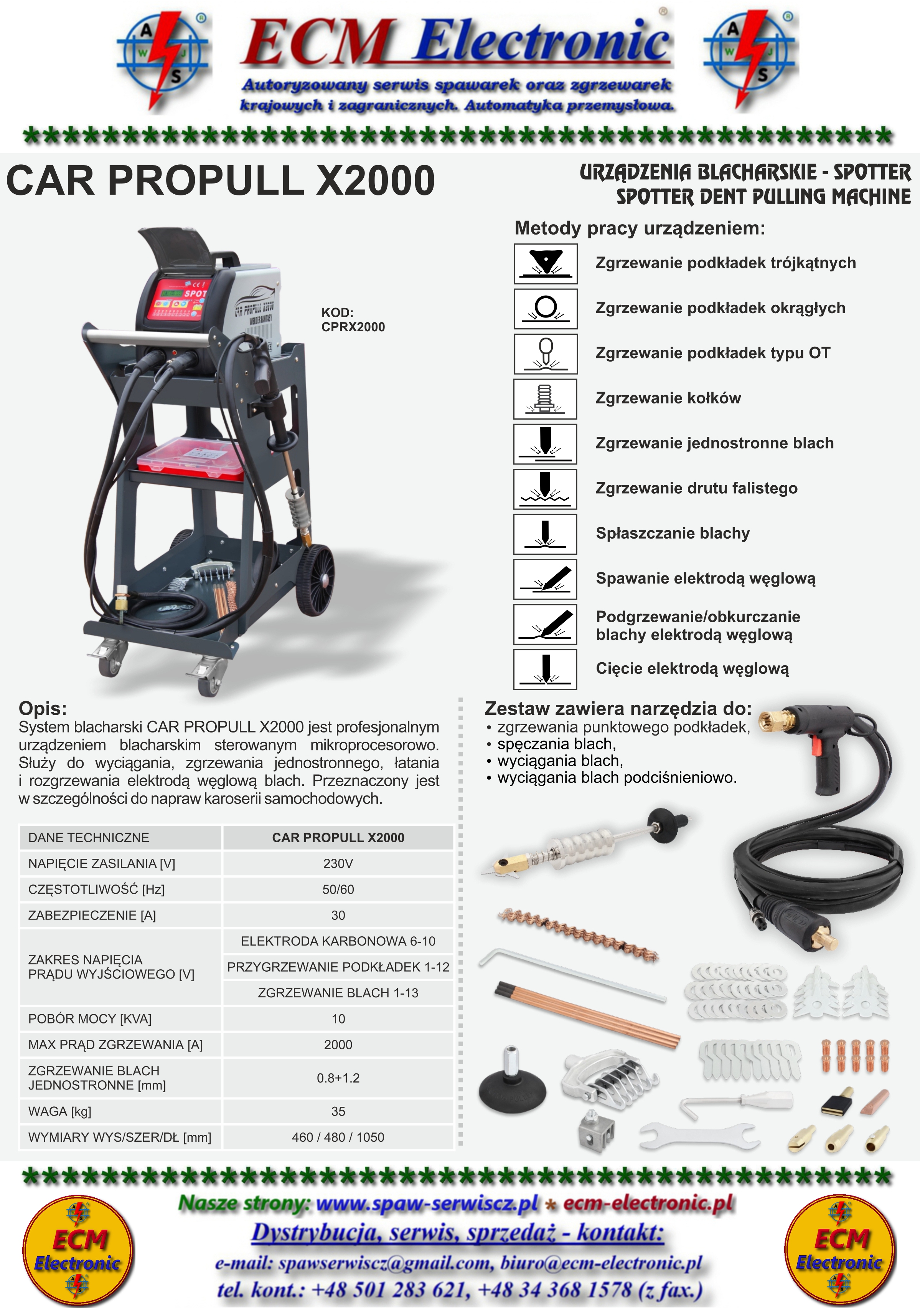 Służy do wyciągania, zgrzewania jednostronnego, łatania i rozgrzewania elektrodą