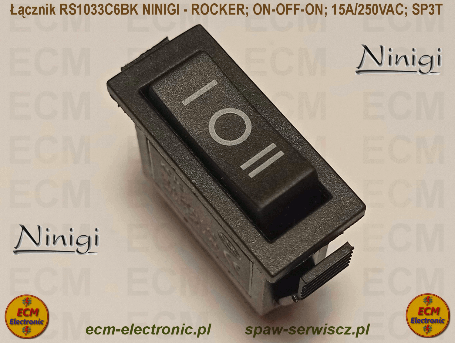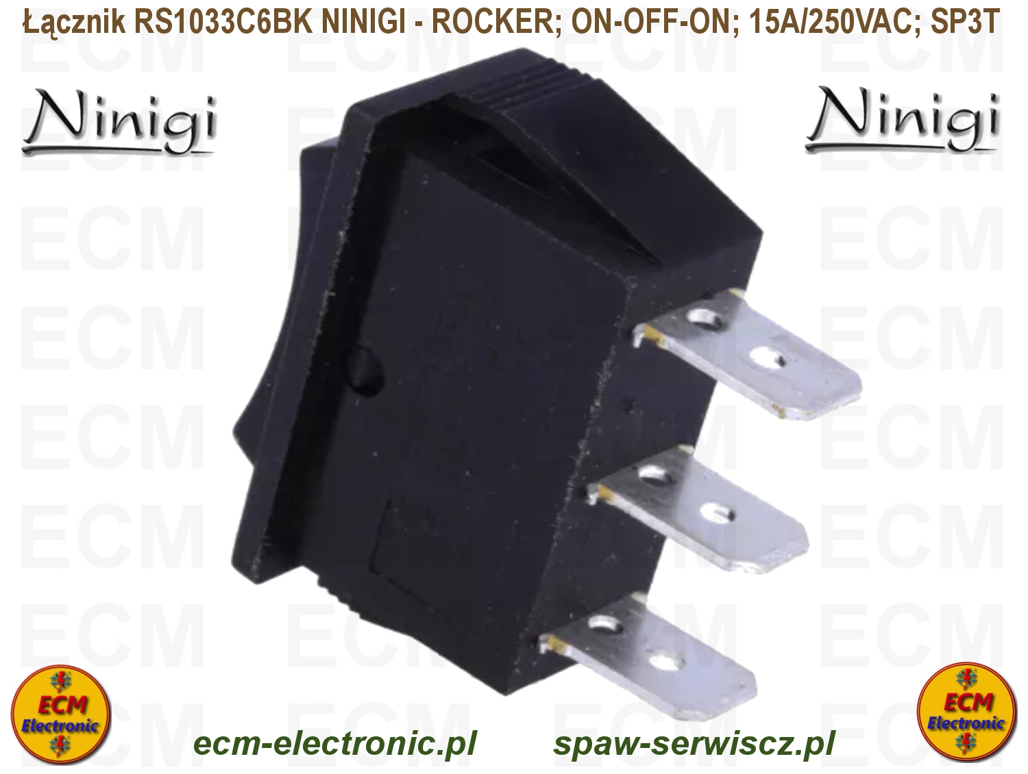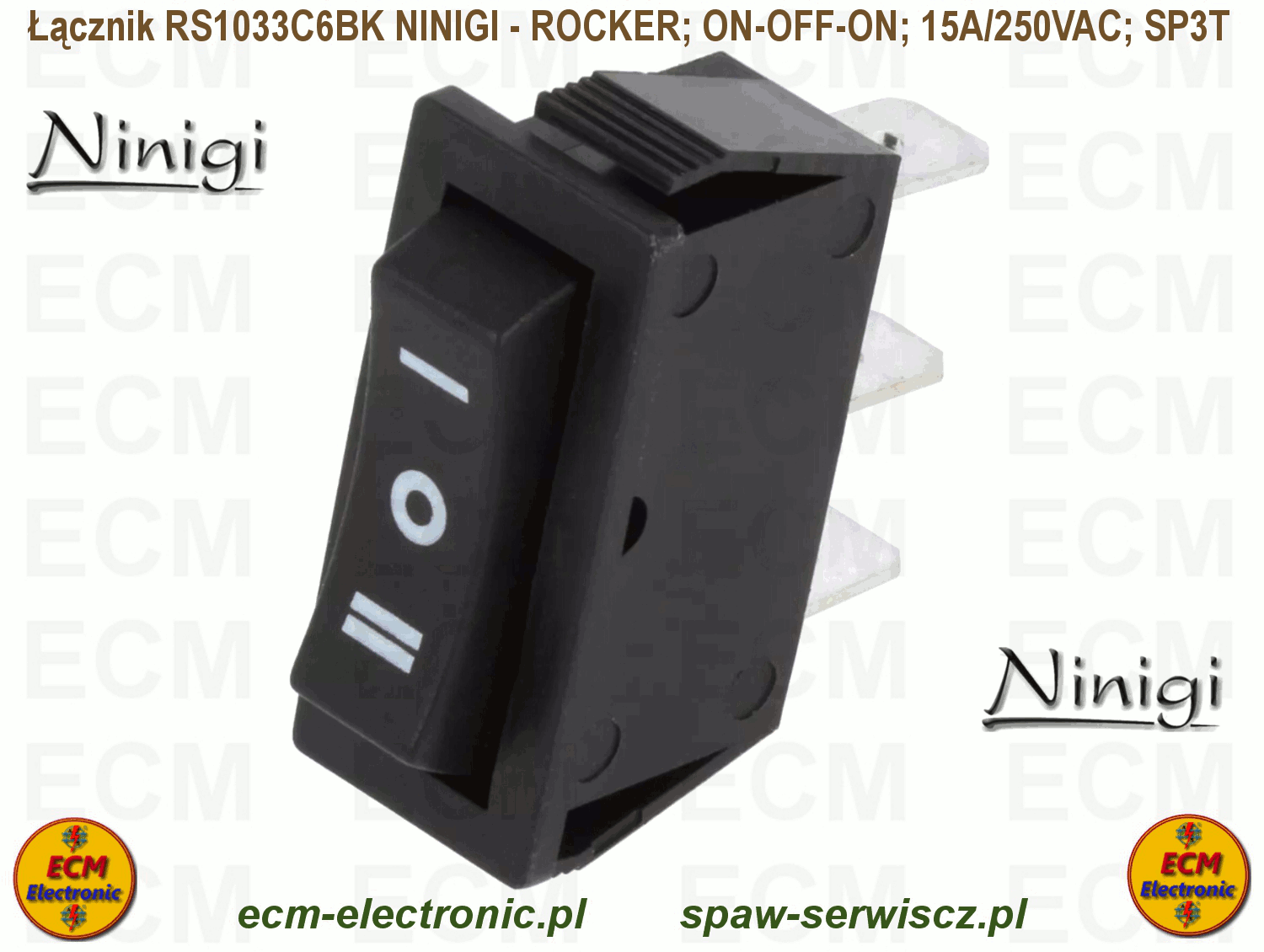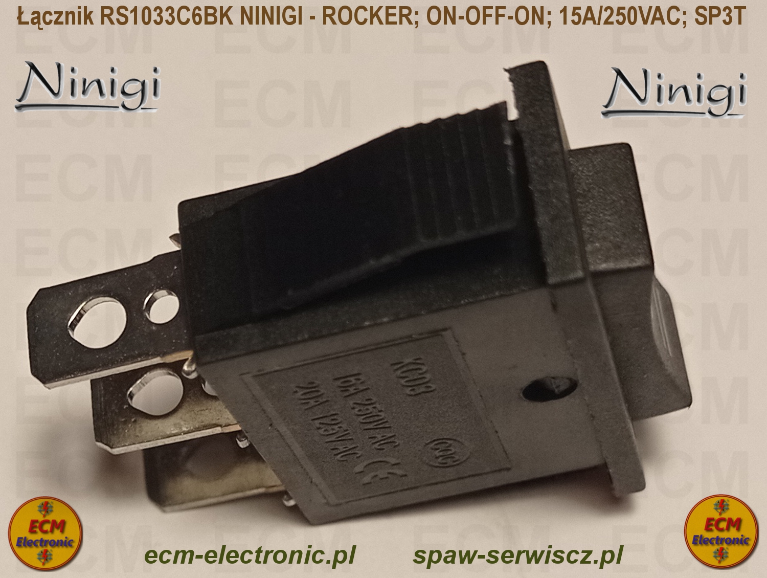 Kod produktu: RS1033C6BK; ON-OFF-ON; DP3T; 15A/250VAC; NINIGI - ROCKER