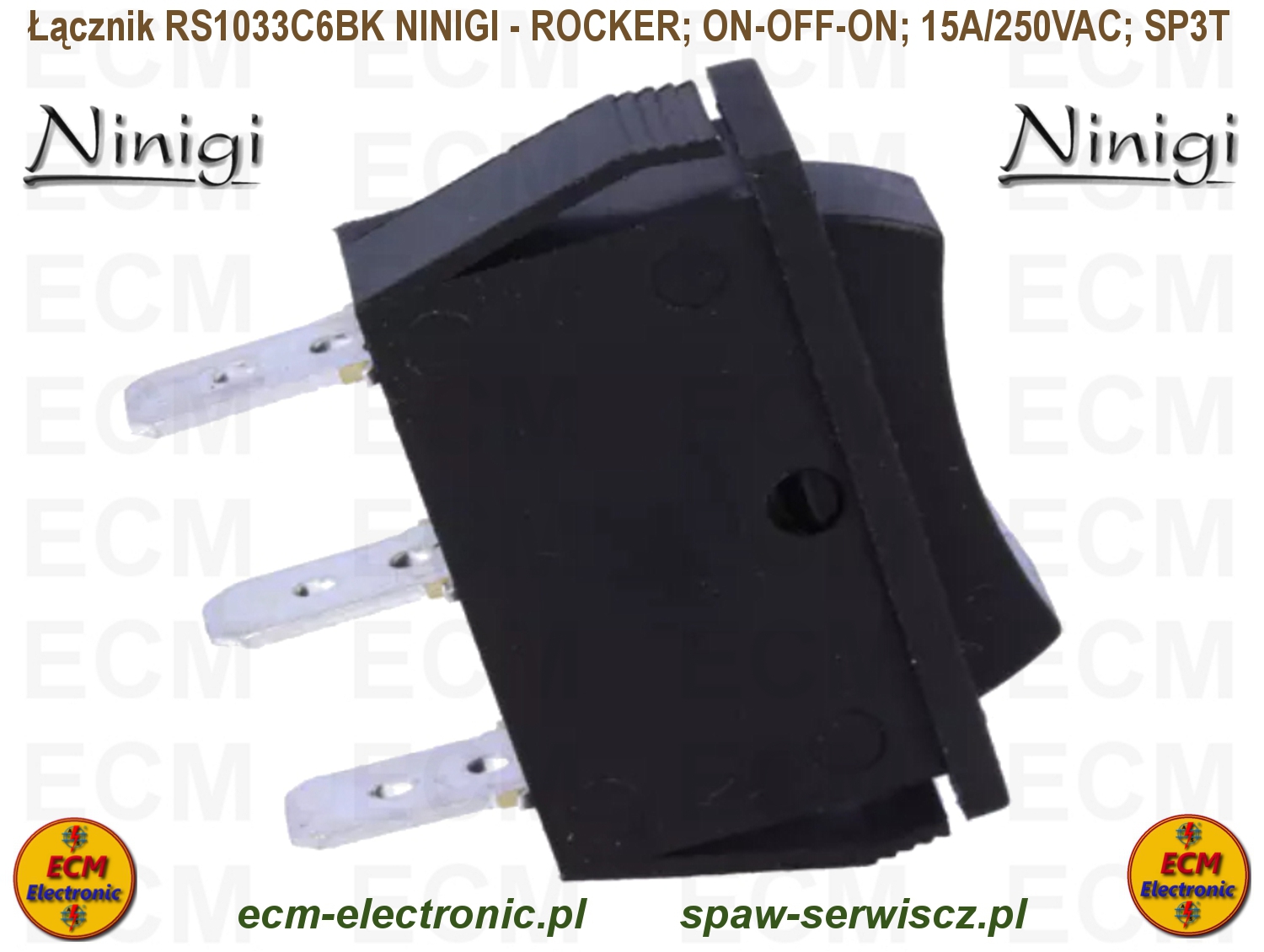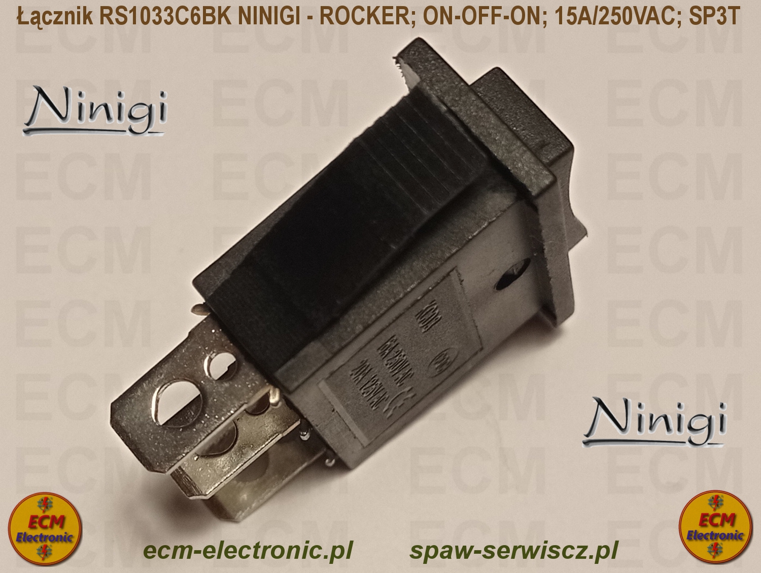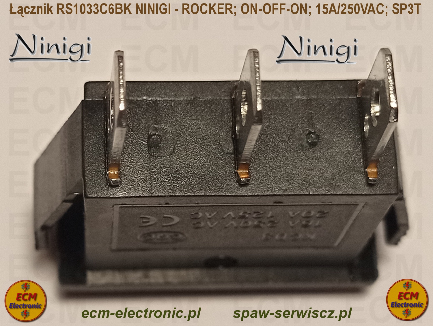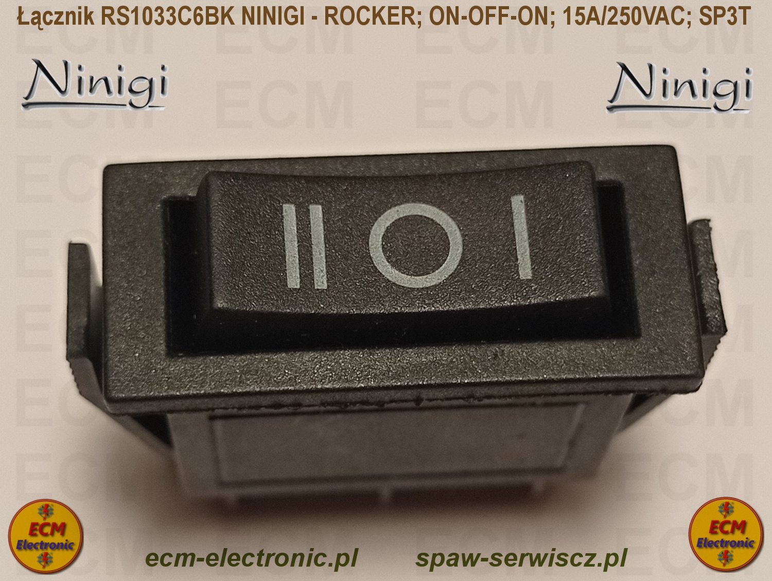 Kod produktu: RS1033C6BK; ON-OFF-ON; DP3T; 15A/250VAC; NINIGI - ROCKER