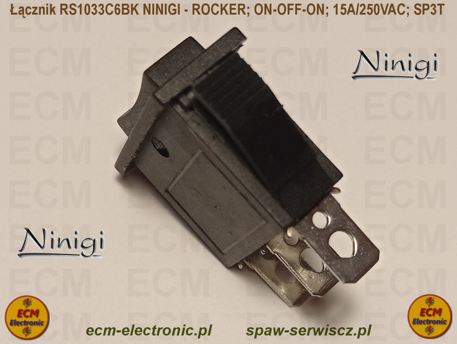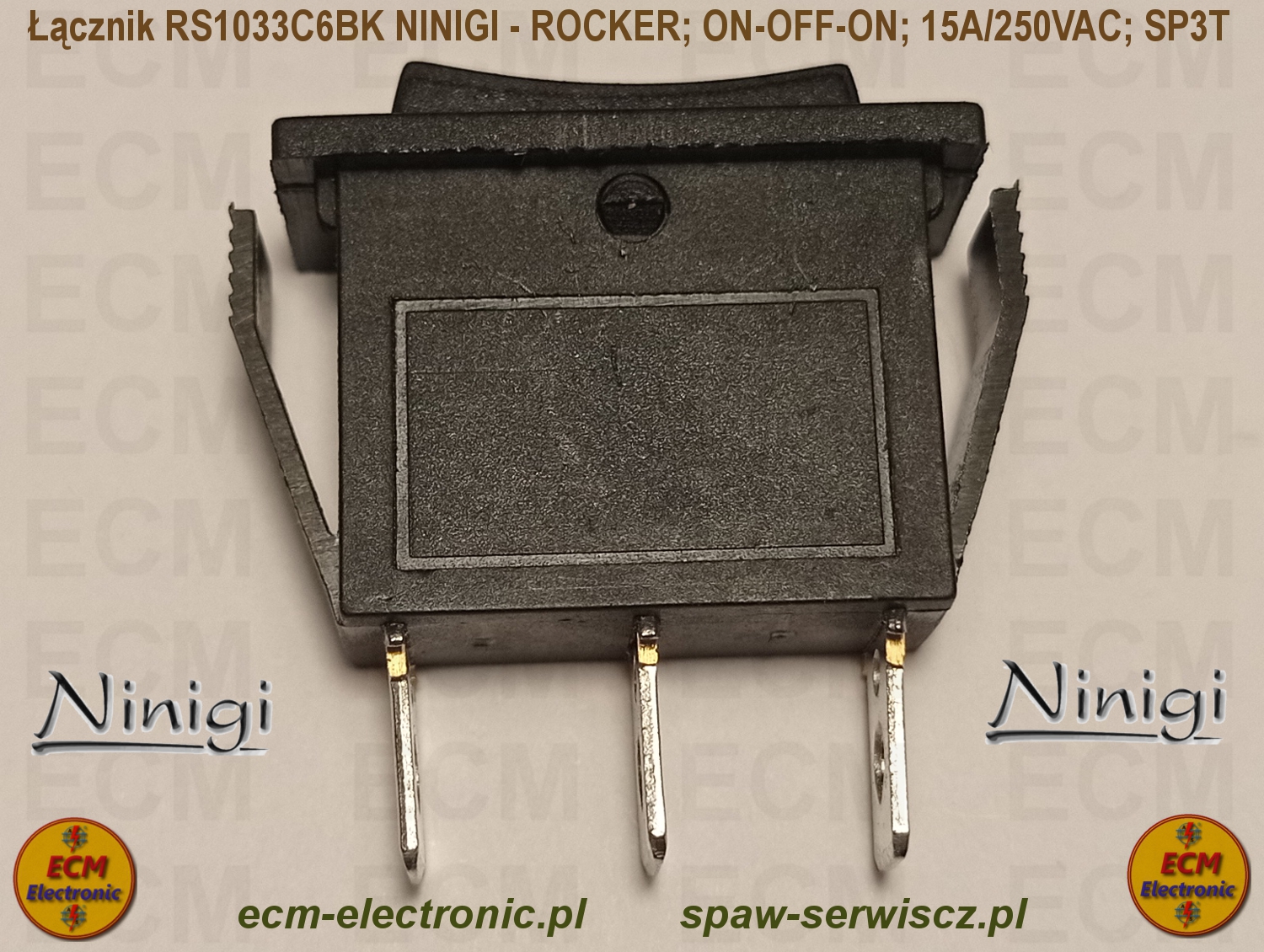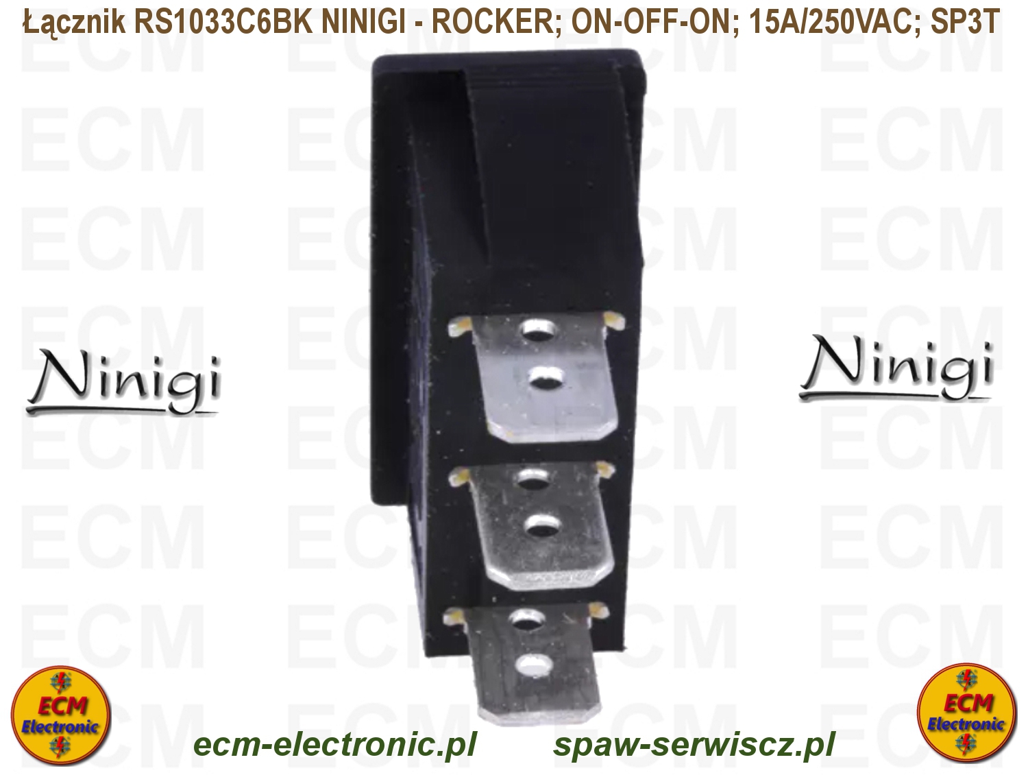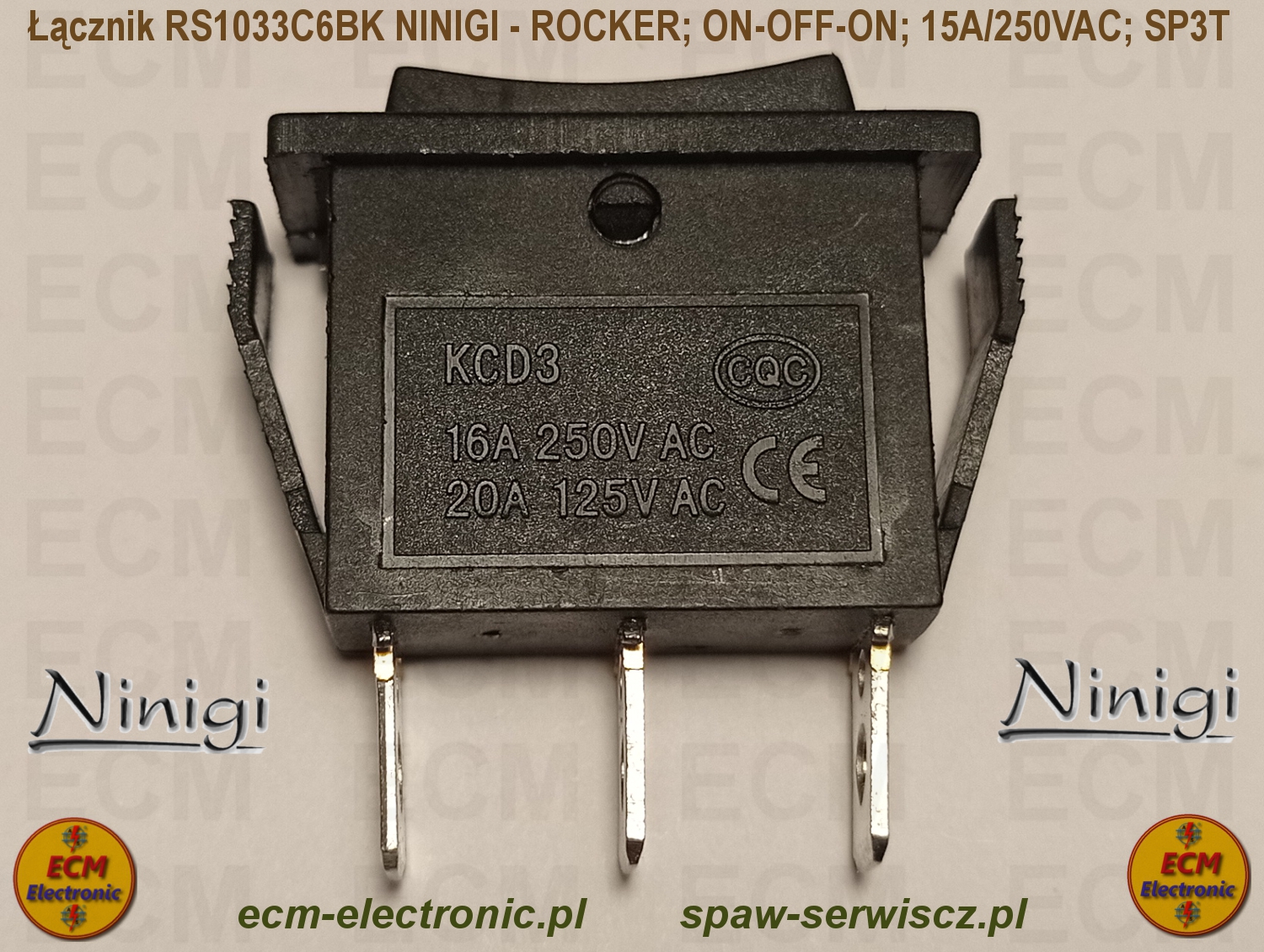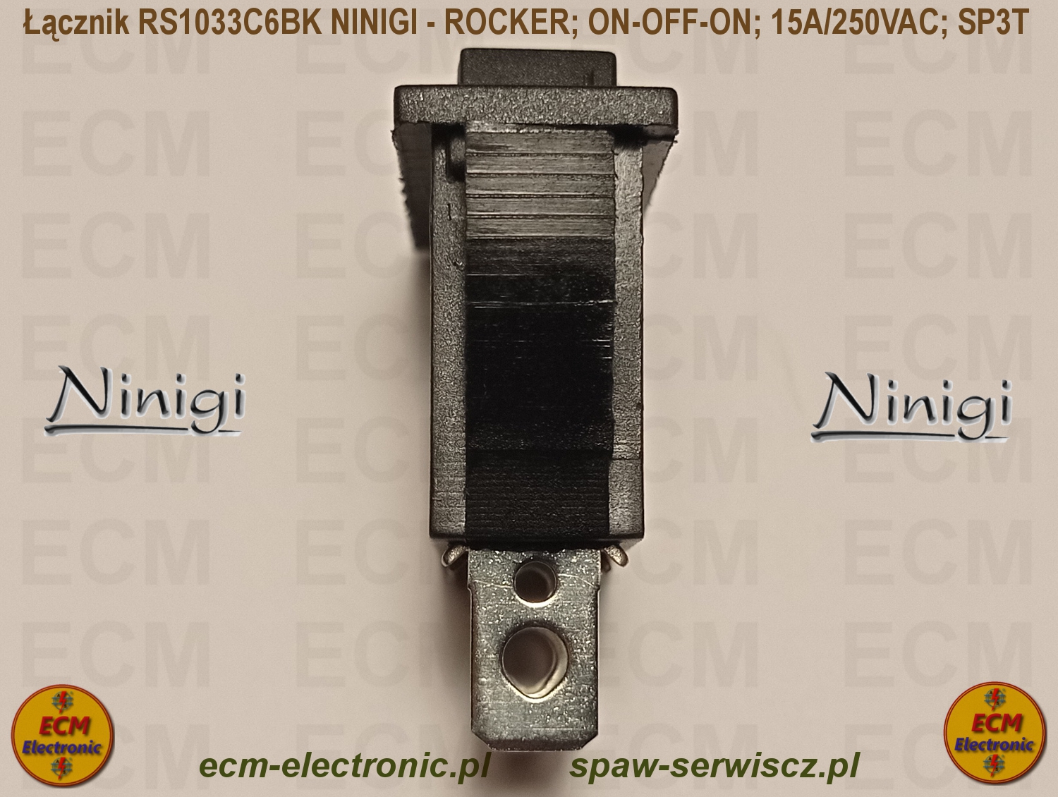 Kod produktu: RS1033C6BK; ON-OFF-ON; DP3T; 15A/250VAC; NINIGI - ROCKER