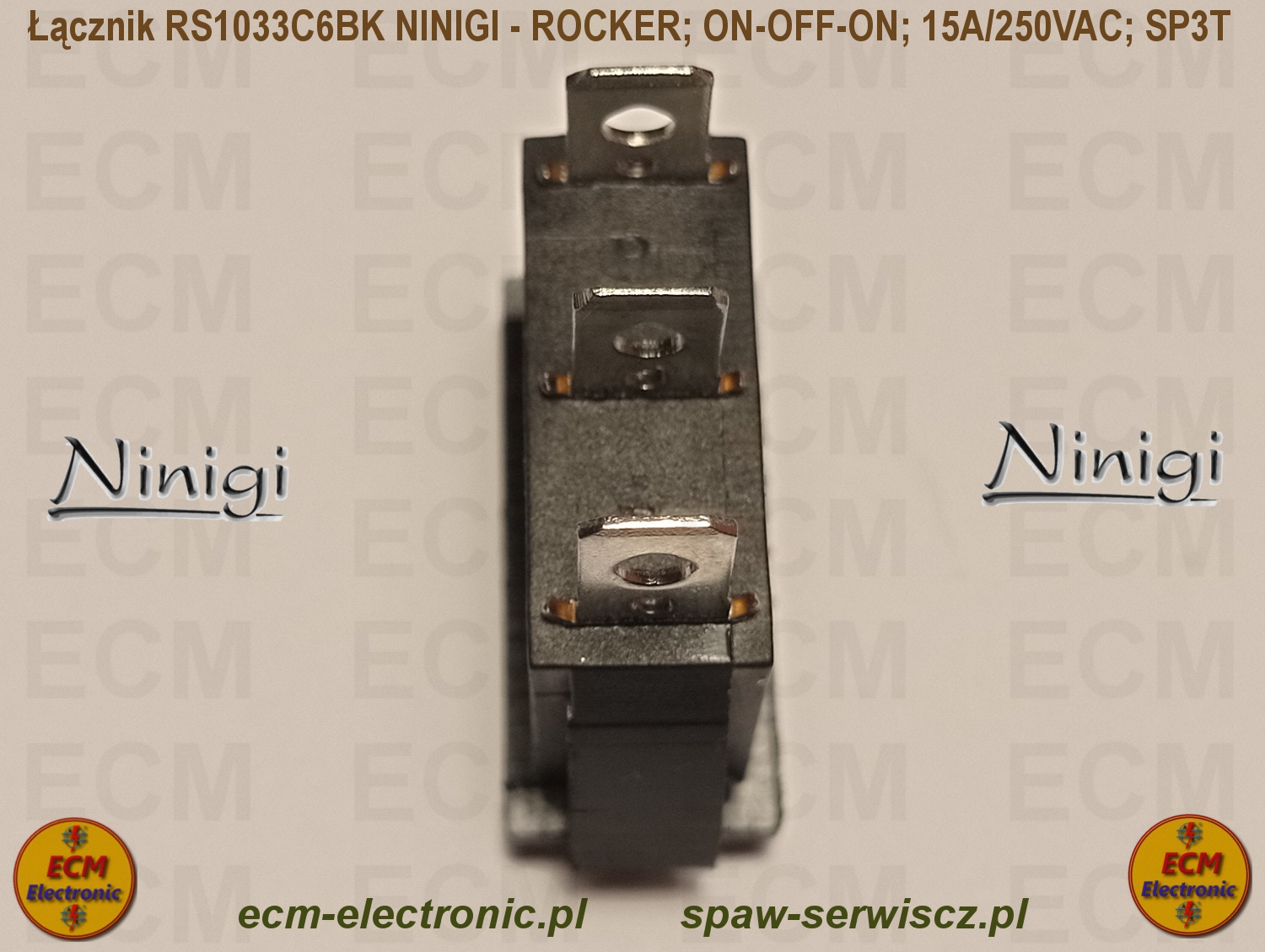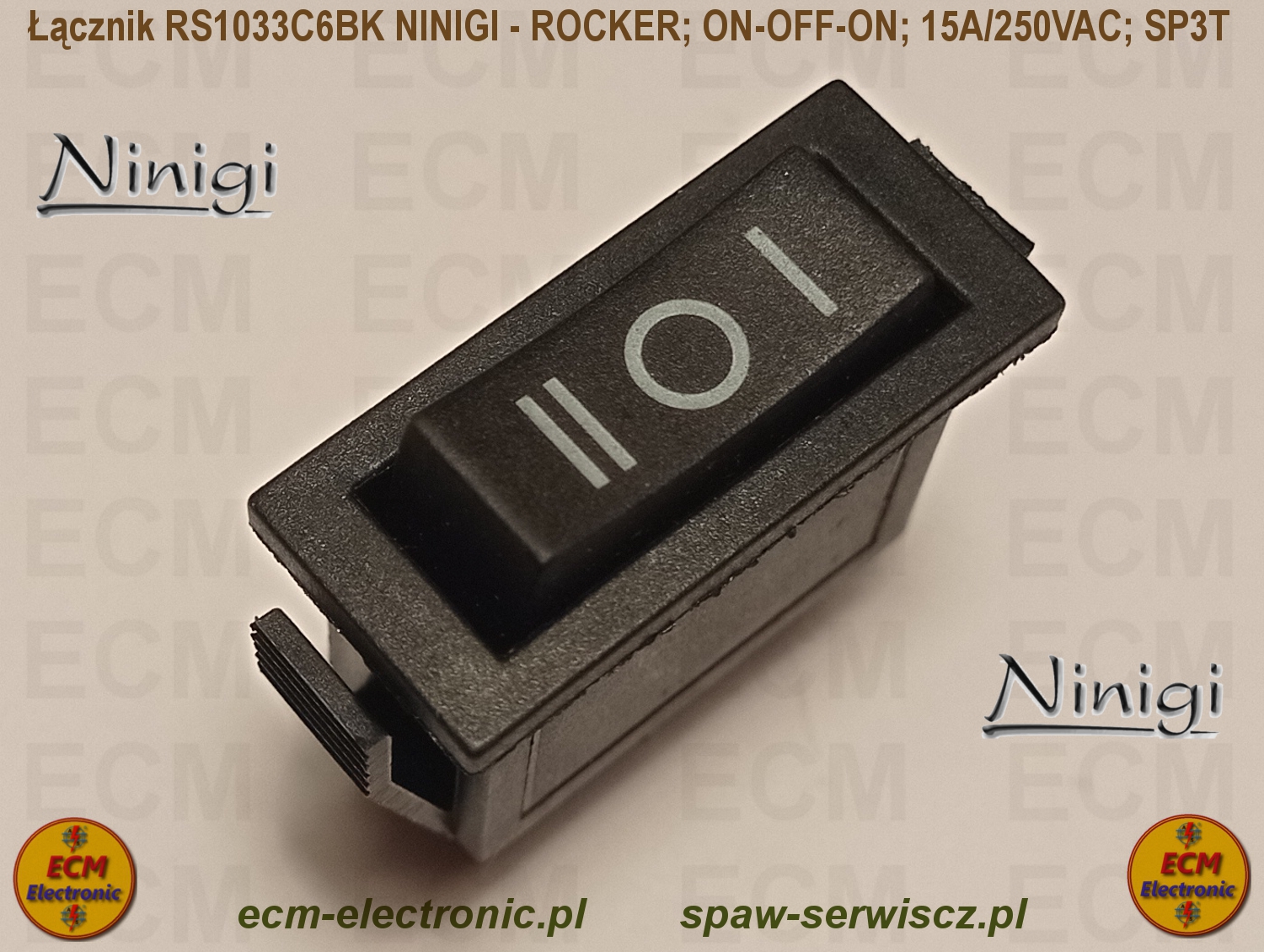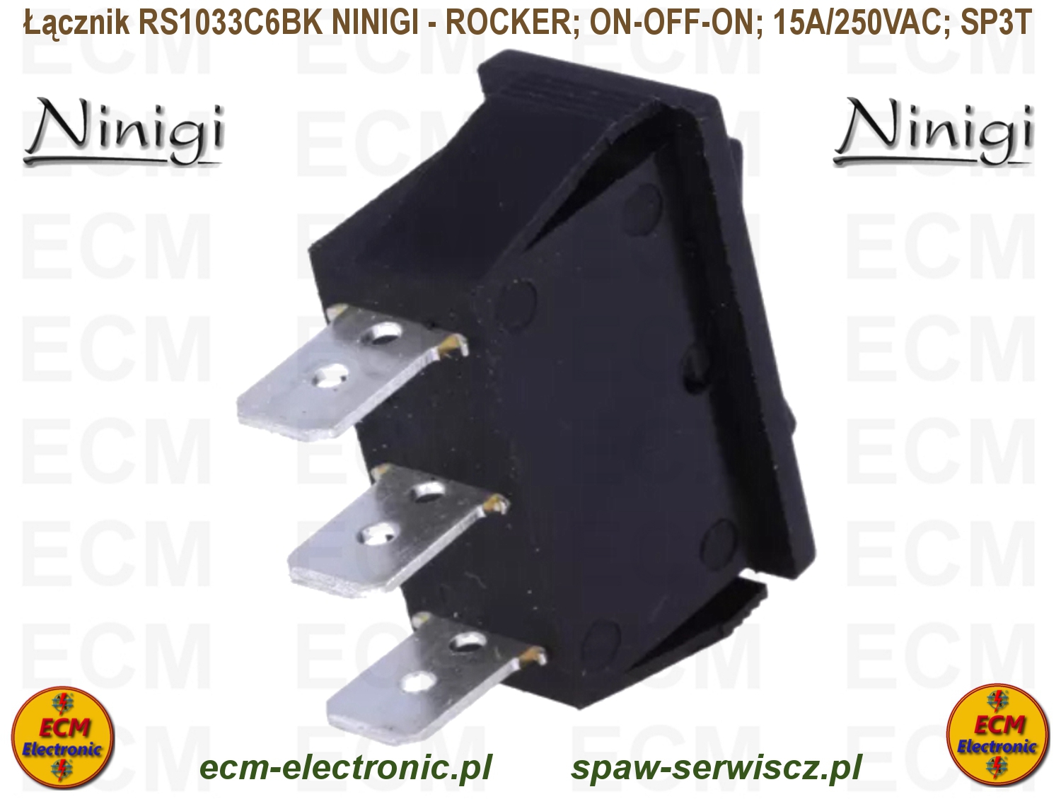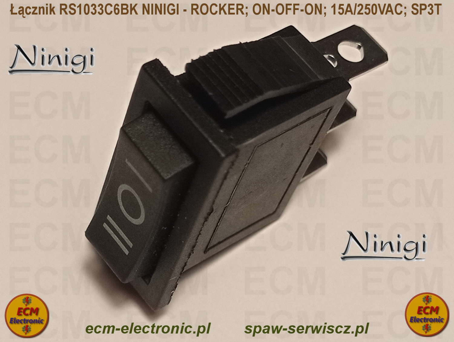 Kod produktu: RS1033C6BK; ON-OFF-ON; DP3T; 15A/250VAC; NINIGI - ROCKER