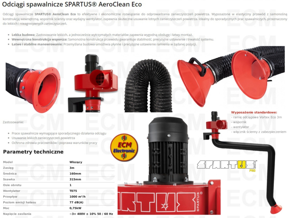 Zastosowanie: Odciągi spawalnicze SPARTUS AeroClean Eco to efektywne i ekonomiczne rozwiązanie do odprowadzania zanieczyszczeń powietrza.