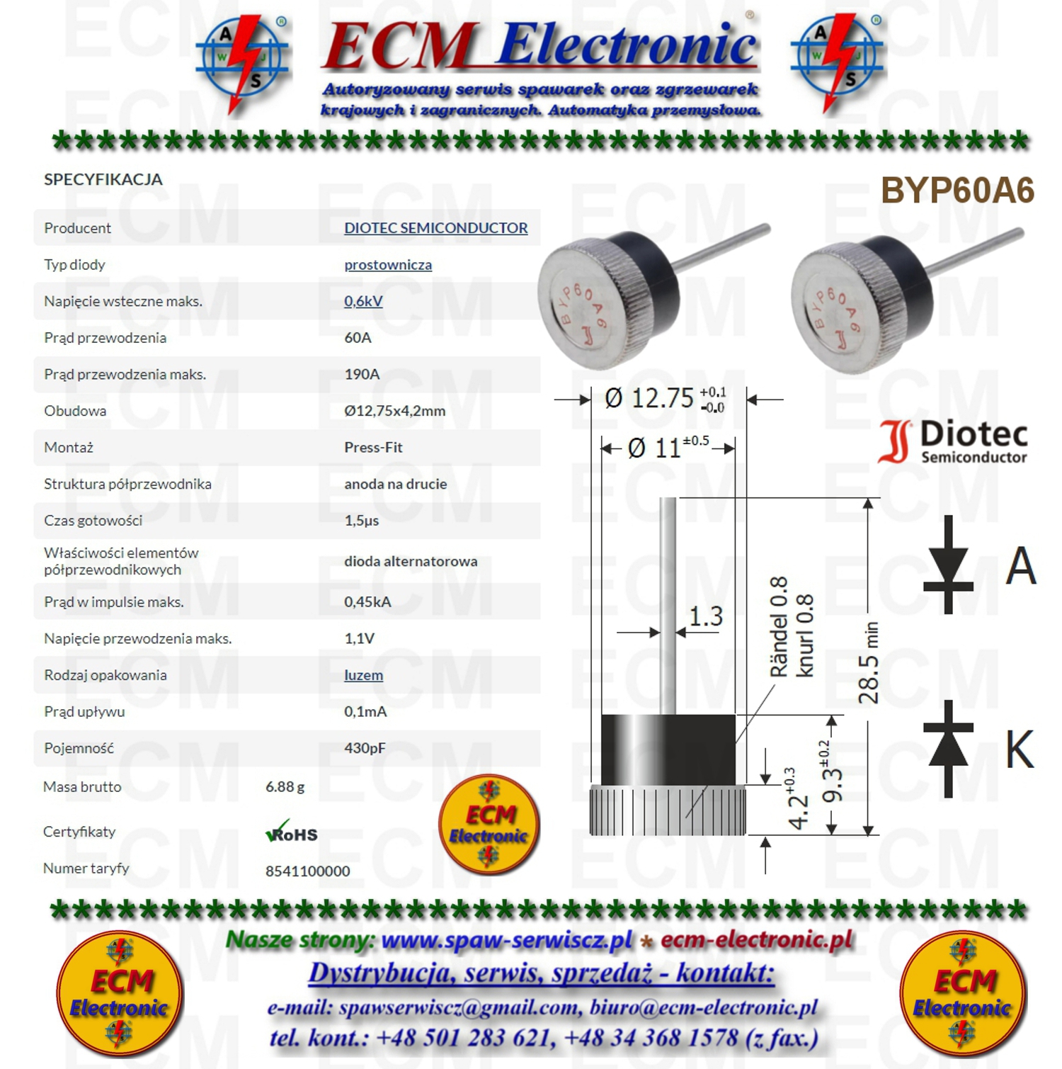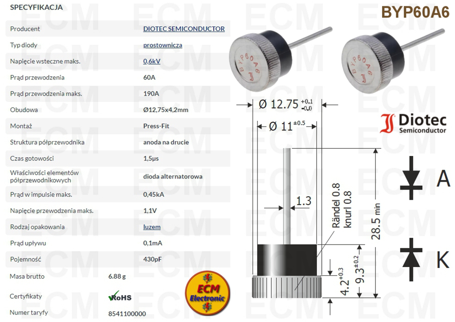 Kod produktu: BYP60A6; Diotec Semiconductor