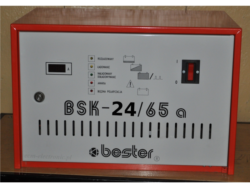 - Przekształtnik typu BSK-24/65a posiada napięcie wyjściowe 24VDC i prąd 65A