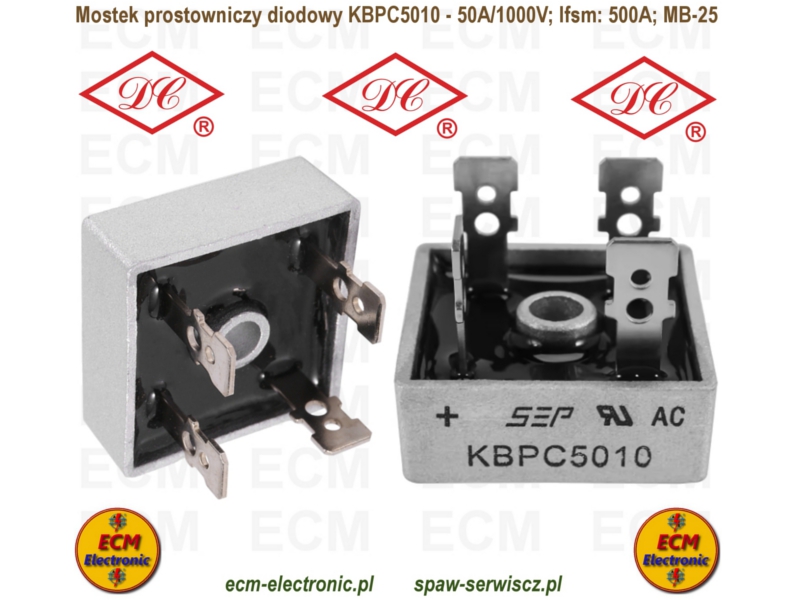 przewodzenia 50A i maksymalnym napięciu wstecznym 1000V oraz prądzie w impulsie