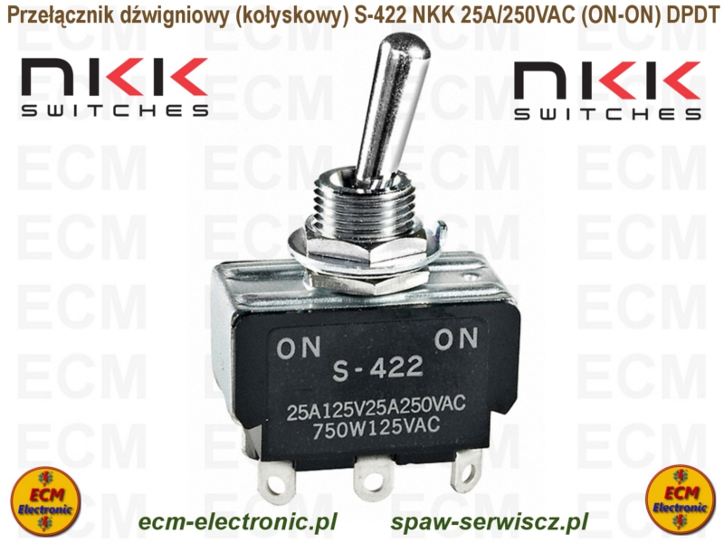 Kod produktu: S-422; ON-ON; DPDT; 25A/250VAC; NKK SWITCHES